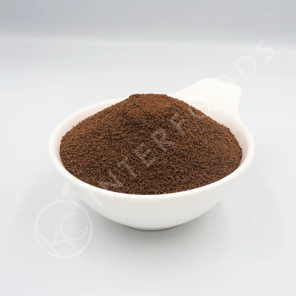 - ผงกาแฟสำเร็จรูป ที่ผ่านการคั่วอย่างพิถีพิถัน ผงมีความหยาบและละเอียด กลิ่นหอมกาแฟโดดเด่น